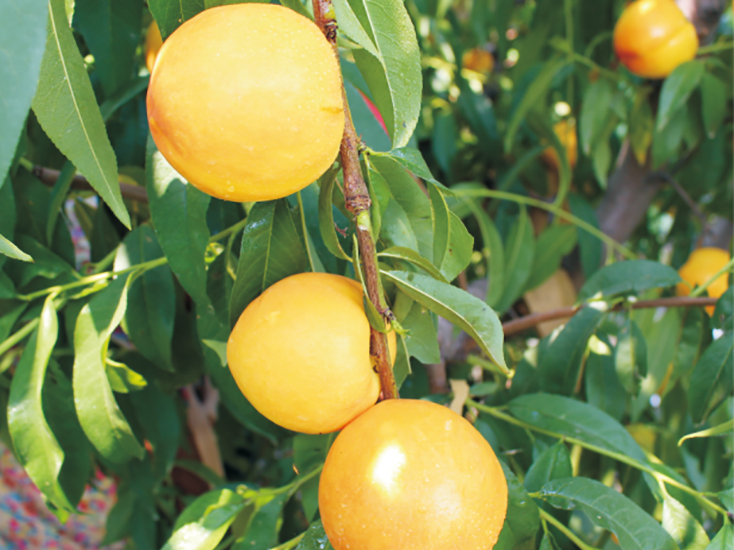 8月初成熟,果實(shí)圓形,平均果重190克,大果250克,黃肉,硬質(zhì),肉質(zhì)細(xì)膩,汁液中等,風(fēng)味香甜,可溶性固形物15%,粘核,自花授粉,極豐產(chǎn)。